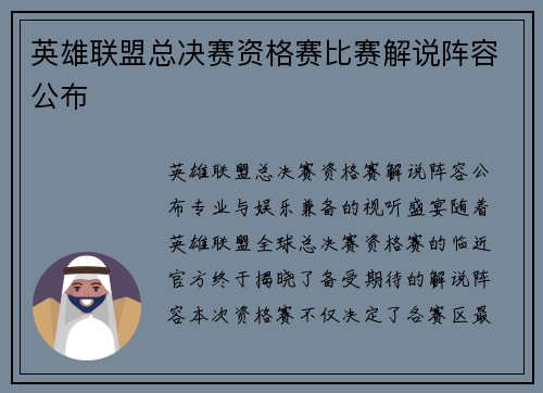 英雄联盟总决赛资格赛战队新赛季队内竞争:全面解析 随着新赛季的到来,英雄联盟总决赛资格赛的各大战队正经历着激烈的队内竞争。这不仅关乎选手的个人发展,更直接影响着战队的整体实力和未来表现。队内竞争是电竞...