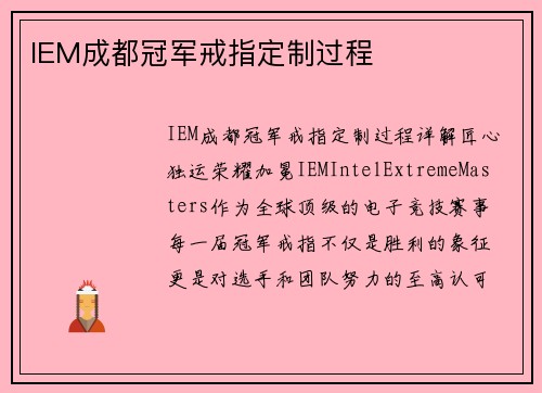 IEM成都赛事概述 英特尔极限大师赛(Intel Extreme Masters,简称IEM)是全球知名的电子竞技赛事系列,由ESL组织,专注于《反恐精英:全球攻势》(CS:GO)等热门游戏。IEM成...