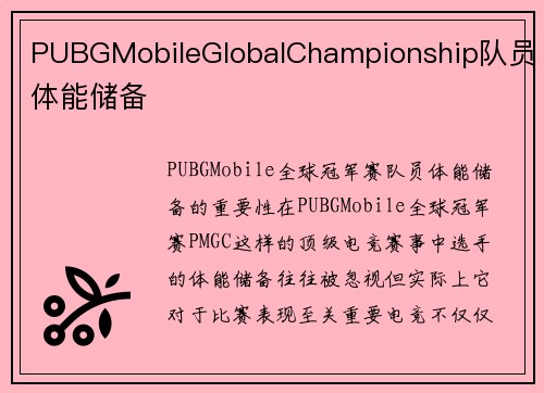 PUBG Mobile Global Championship团队目标实现概述 PUBG Mobile Global Championship(简称PMGC)作为全球顶级的移动电竞赛事,吸引了来自世界...
